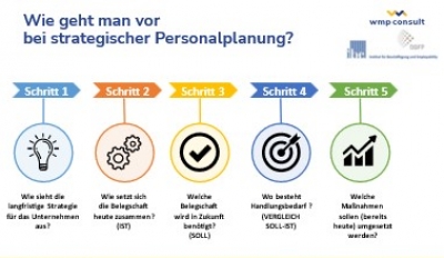 Bevor die eigentliche Personalplanung beginnen kann, muss klar sein, wohin sich das Unternehmen entwickeln möchte und mit welchen Herausforderungen das Personalmanagement konfrontiert ist. Dazu liefert Pythia die notwendigen Denkanstöße, denn nicht wenige KMU sind so vom Tagesgeschäft beherrscht, dass ein langfristiger Blick in die Zukunft oft zu kurz kommt. Es ist sinnvoll, schon zu Beginn ein Planungsteam aus allen relevanten Akteuren zu bilden und die Mitarbeitervertretung früh einzubinden.