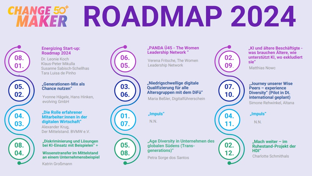 In der ersten Coffee Break 50+ des neuen Jahres haben wir außerdem gemeisam die Roadmap 2024 gestaltet. An 11 Termine am jeweils ersten Montag im Monat präsentiert Ihr Eure Idee oder Euer Projekt in 15 bis 20 Minuten. Wir freuen uns auf ein spannendes Veranstaltungsjahr 2024!